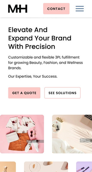 The interface was designed to make MasonHub’s industry focus immediately legible while maintaining a cohesive overall experience. To support different audiences, I updated site imagery to show the end consumers of MasonHub’s clients, helping prospective brands see how fulfillment and logistics connected to their own customer experience.